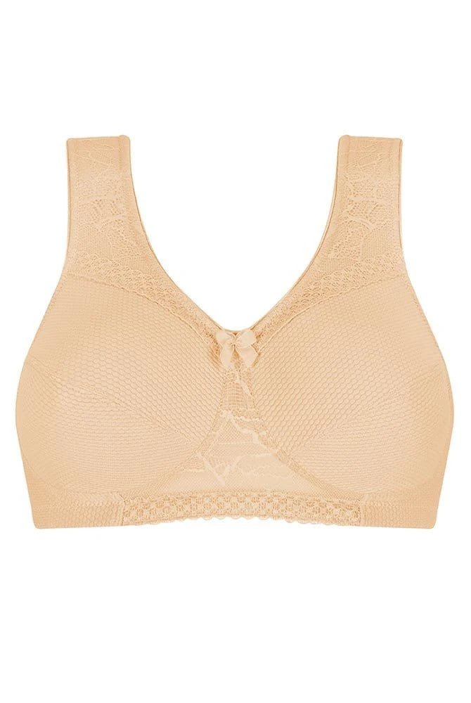 Das weiche strukturierte Material, dass auch die Prothesentaschen mit einbezieht, sorgt für einen leichten Massageeffekt, um den Lymph-Abfluss zu unterstützen. Die Cup-Konstruktion ist speziell entwickelt für große Größen. Höher geschnittene Seiten- und Rückenteile sorgen für einen hohen Tragekomfort. Die höhere Abdeckung von Seiten- und Rückenteil und ein breiteres Unterbrustband sorgen für optimalen Sitz und Halt. Beidseitig diskret eingearbeitete Taschen behalten Ihre Brustprothese sicher verwahrt. Weich gepolsterte Träger sorgen für maximalen Komfort und entlasten die Schultern, um den Lymphabfluss nicht zu behindern. Eine hübsche kleine Schleife ist in der vorderen Mitte angebracht. Der Rückenverschluss ist mit Ösen und Häkchen versehen.