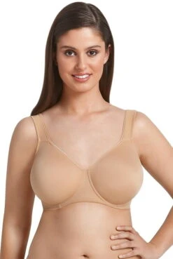 Ab Cup E sorgt eine zusätzliche Naht für die ideale Unterbrustverstärkung. Seitliche Blenden geben den Cups Halt und Form. Breite, weiche, verstellbare Träger entlasten den Rücken, vor allem in großen Größen.