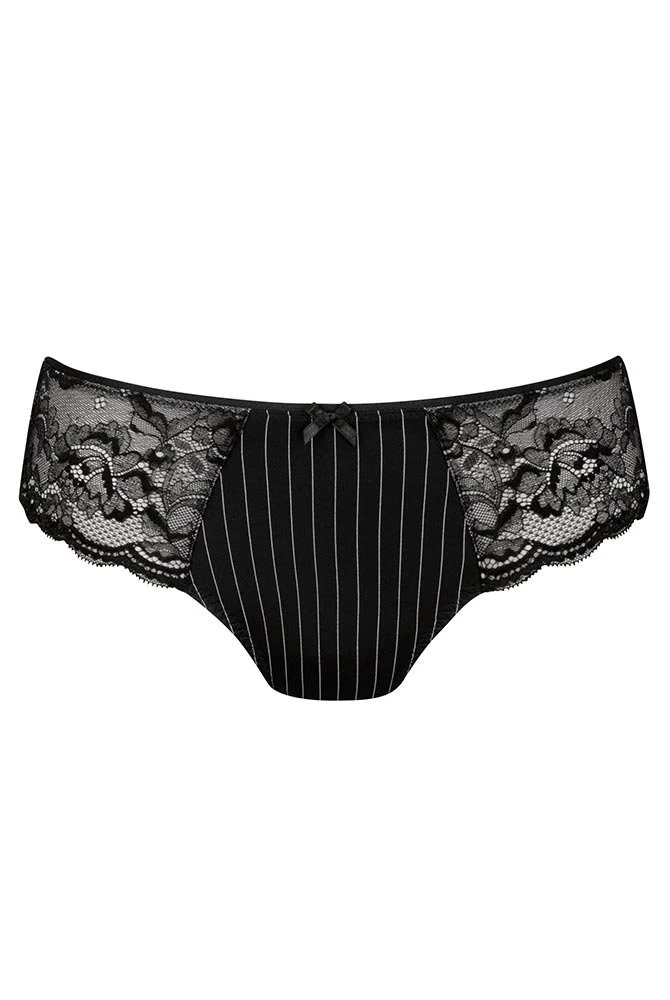 La Dolce Vita! Der wunderschöne Taillenslip besteht aus feiner Mikrofaser mit klassischer Nadelstreifen-Optik und wird durch seitliche Einsätze aus sinnlicher Spitzenstickerei elegant geschmückt. Mit seinem stilvollen Spiel aus Materialien und Design sorgt der Antonia Taillenslip von ROSA FAIA für einen hinreißenden Blickfang! Slip Antonia ergänzt perfekt unseren BH Antonia als zauberhaftes Set.